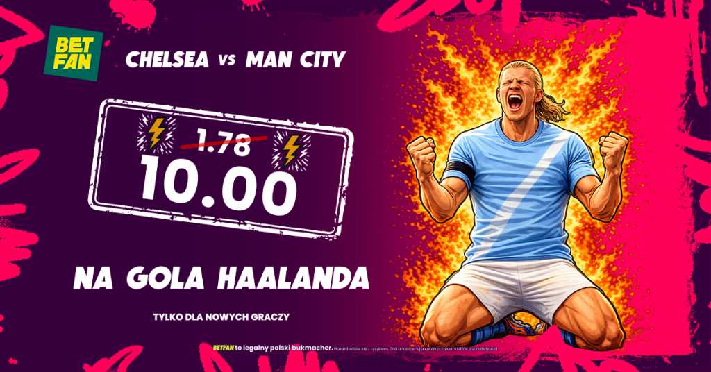 - Postaw swój pierwszy kupon SOLO za dokładnie 20 PLN na gola Haalanda z Chelsea po specjalnym kursie 10.00 W TYM MIEJSCU.