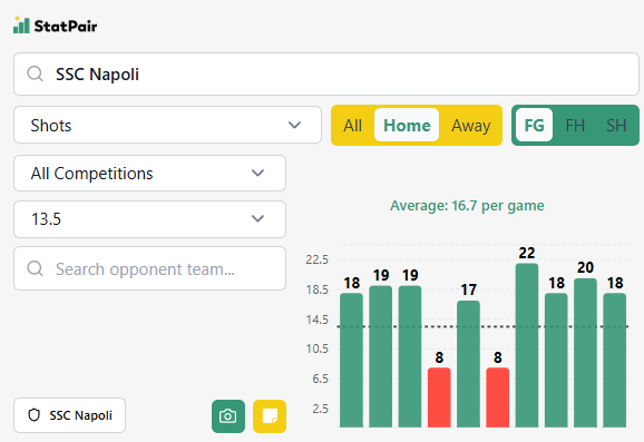 - Nasz typ: Napoli +13,5 strzałów