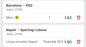 Bez dwóch zdań: absolutnym hitem dnia jest starcie Barcelony z PSG. Mecz europejskich gigantów zaznaczamy gwiazdką i czerwonym flamastrem, a przy tym analizujemy go pod kątem zakładów, bo znajdzie się on na naszym kuponie. Poza tym, odmawiamy również zdrowaśkę, aby słynna przyśpiewka o Napoli nie znalazła dziś swojego potwierdzenia w przypadku naszego dubla.