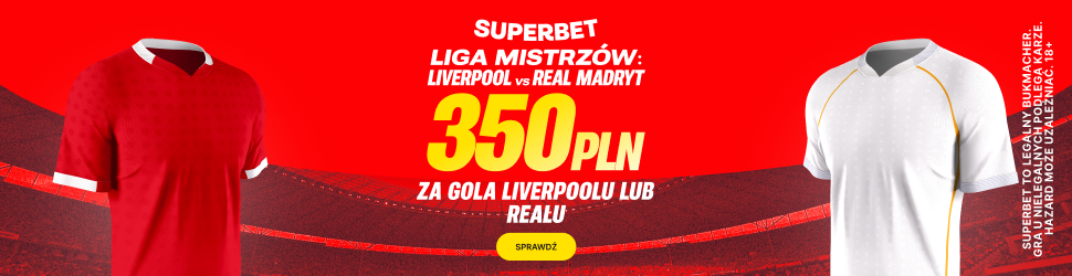 - Gol wybranego zespołu w meczu Liverpool – Real Madryt = bonus 350 złotych.