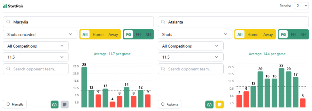 Teraz poprzeczka idzie w górę, ale bez przesady – Marsylia nie jest jakimś gigantem, przed którym trzeba się pokłonić. Gospodarze w Ligue 1 rzadko pozwalają swoim przeciwnikom na szaleństwa, ale tegoroczna Liga Mistrzów to już zupełne przeciwieństwo. 28 strzałów Realu Madryt to nie jest żadne zaskoczenie, ale 13 w wykonaniu Ajaxu i 14 po stronie Sportingu pokazują nam, że Atalanta śmiało może celować w podobne liczby.