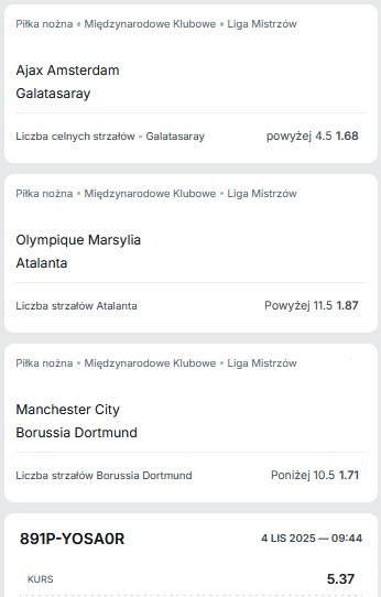 Liga Mistrzów: 4. kolejka, 05.11.2025