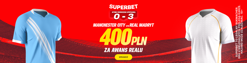 Rewanże 1/8 finału Ligi Mistrzów to również kolejna świetna promocja bukmachera Superbet: aż 400 złotych dodatkowego bonusu dla nowych graczy! Należy dokonać pełnej rejestracji z kodem PEWNIACZKI, wpłacić 50 złotych i wygrać zakład na awans Realu Madryt lub Arsenalu.