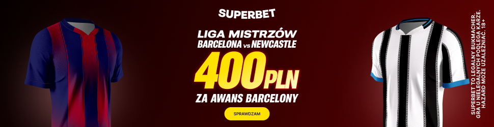 Rewanże 1/8 finału Ligi Mistrzów to również kolejna świetna promocja bukmachera Superbet: aż 400 złotych dodatkowego bonusu dla nowych graczy! Należy dokonać pełnej rejestracji z kodem PEWNIACZKI, wpłacić 50 złotych i wygrać zakład na awans Barcelony lub zwycięstwo Liverpoolu z Galatasaray.