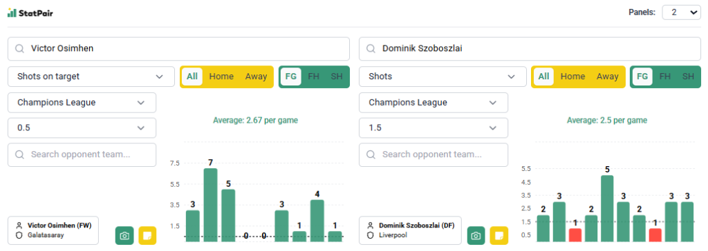 Po pierwsze: minimum jedno celne uderzenie Victora Osimhena. Liverpool popełnia mnóstwo błędów, Virgil Van Dijk nie jest w szczycie swojej formy i jest to drużyna jak najbardziej do ukąszenia nawet u siebie, zatem Nigeryjczyk może mieć tu swoje okazje. Generalnie to typ napastnika, który nad oddaniem strzału zastanawia się jakieś półtorej sekundy, po czym ładuje z każdej pozycji. I w światło bramki trafia bardzo często – w Lidze Mistrzów na 9 spotkań nie udało mu się to tylko dwukrotnie, a w obu meczach z Liverpoolem robił to łącznie 4 razy (3 i 1). Liczę, że Galata nie okopie się pod własną bramką i będzie się odgryzać faworytowi, bo jeśli tak właśnie zrobi to nie widzę tu scenariusza, gdzie Osimhen nie oddaje kilku uderzeń.