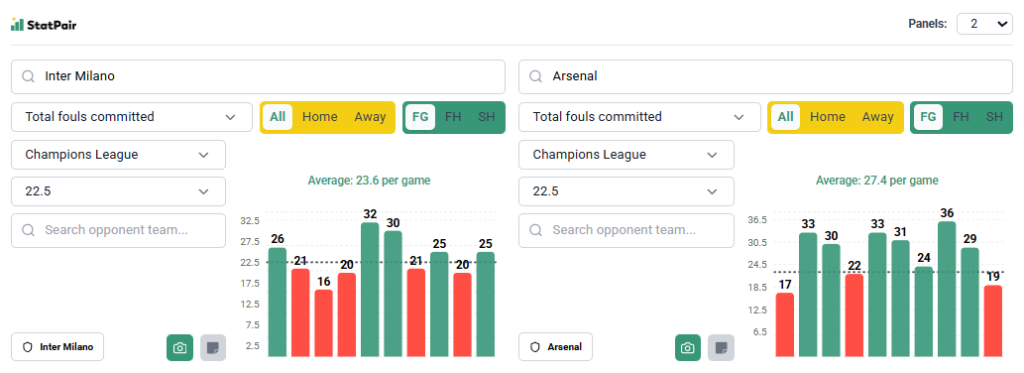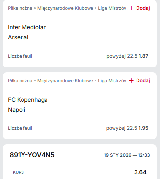 Tak jak pisaliśmy wyżej – mecz Interu z Arsenalem to prawdziwy szlagier. Legalni bukmacherzy nie mają jak wskazać faworyta, co pokazuje nam, jak zacięte starcie szykuje się w Mediolanie. Uznajemy, że nie zabraknie w nim fauli, a linia 22,5 przewinień w przypadku tego zestawienia zdaje się być ciekawym wyborem.