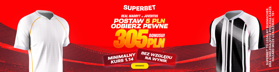 Środa to kolejna szansa na zdobycie dodatkowych środków bonusowych za pełną rejestrację w Superbet z kodem PEWNIACZKI. Nowi gracze mogą wybrać: albo pewne 300 złotych za zakład na mecz Real – Juventus, albo 400 złotych za zwycięstwo Bayernu z Club Brugge.