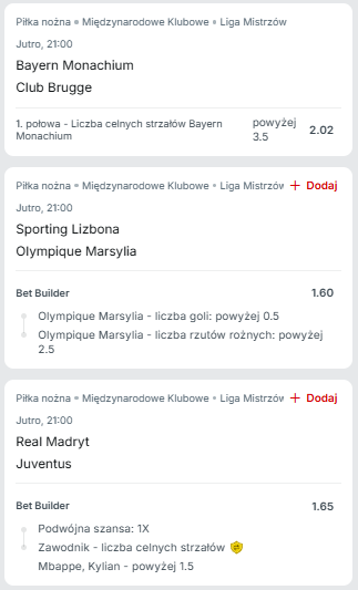 Czas dokończyć 3. kolejkę Champions League. W środę odpuszczamy mecze o 18:45, a na kupon wrzucamy ostatecznie trzy wieczorne zdarzenia i liczymy, że nie będziemy żałować tej lekkiej pazerności. Czy Liga Mistrzów da zarobić? Na pewno dodatkowa kasa czeka na nowych graczy, którzy skorzystają z promocji.
