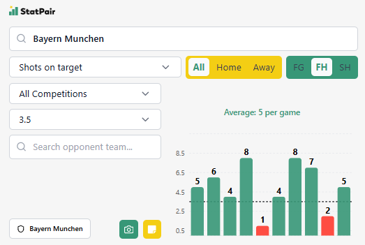 - Nasz typ: Bayern +3,5 celnych strzałów w 1. połowie