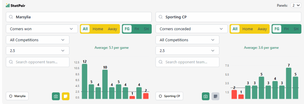 Co do Sportingu to na co dzień mierzy się raczej ze słabszymi drużynami niż Marsylia. Nie przeszkadzało mu to jednak tracić gole z Famalicao, Kairatem, Bragą czy Ferreirą, także tutaj na czyste konto raczej nie liczymy. Rzutów rożnych przeciwników też nie brakuje, bo 8 razy z rzędu pokrywali oni linię 2,5, która wcale nie jest zbyt wymagająca.