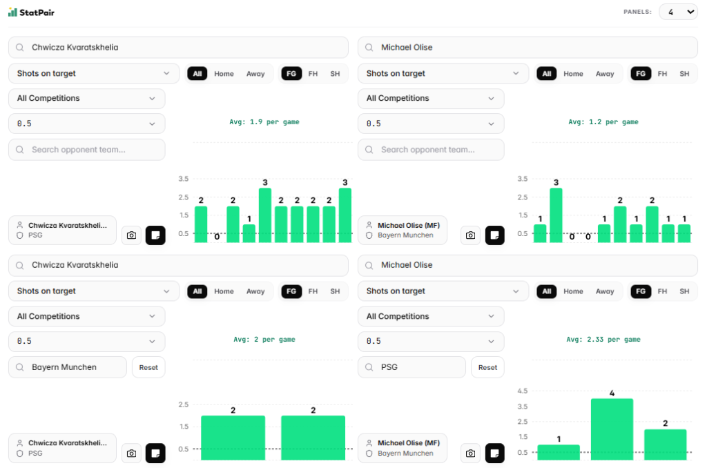 Na koniec mały powrót do najnowszej historii, ponieważ PSG grało z Bayernem i w 4. kolejce fazy ligowej, i w Klubowych Mistrzostwach Świata. Wniosek? W obu tych meczach ci panowie zaliczali po min. 2 celne strzały.