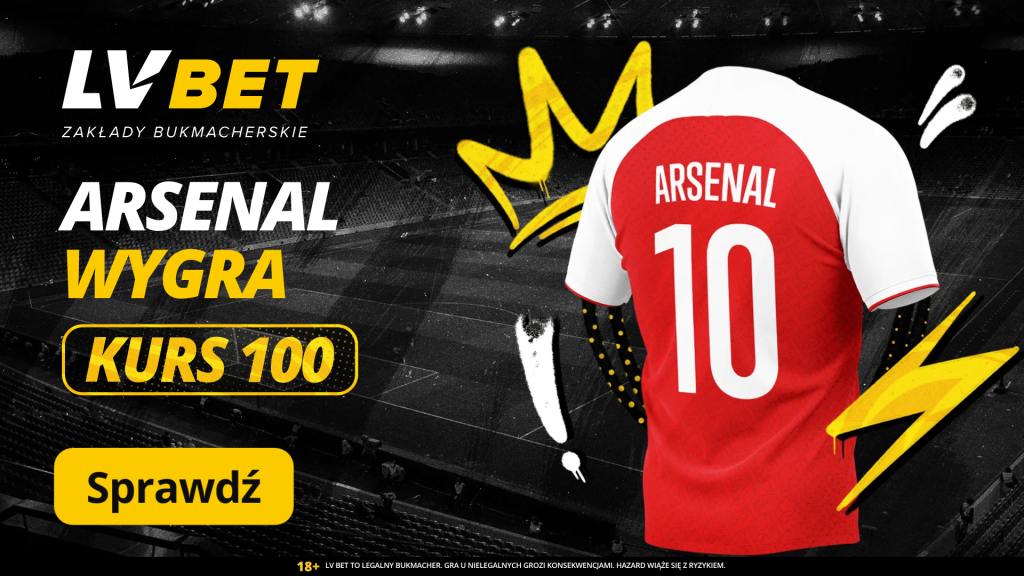 Jeśli nie masz jeszcze konta w LV BET, a interesujesz się rozgrywkami Premier League to dostajesz idealną okazję na założenie go – nowi gracze mogą postawić na zwycięstwo Arsenalu z Evertonem po kursie 100.00!