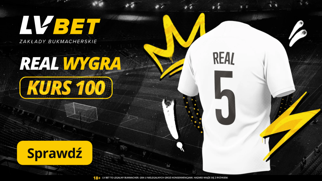 - Jeśli Twój zakład będzie wygrany to LV BET policzy Ci wygraną po kursie 100.00, co oznacza bonus 100 PLN!