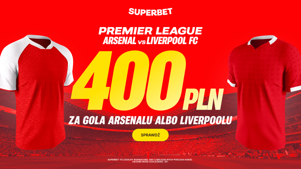 Mecz Arsenalu z Liverpoolem to największy hit tej kolejki Premier League. Który zespół zdobędzie w nim bramkę? Nowi gracze Superbet otrzymają dodatkowe 400 złotych bonusu za wygrany zakład na gola wybranej drużyny w tym pojedynku.