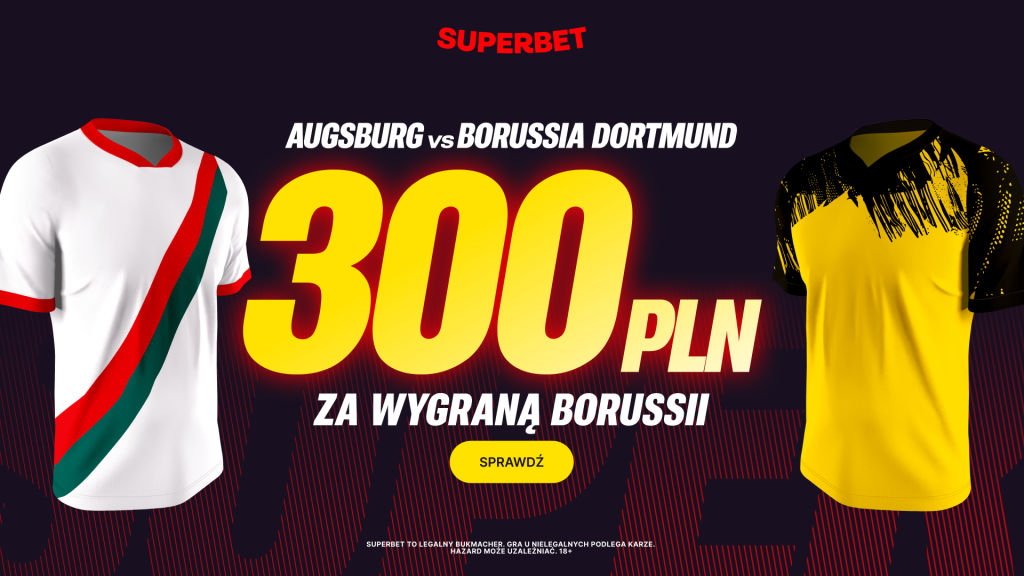 Najbliższą kolejkę niemieckiej Bundesligi otworzy starcie Augsburga z Borussią Dortmund. Faworytem tego spotkania jest BVB, które chociaż na chwilę będzie mogło wskoczyć na pozycję wicelidera. Czy sprosta zadaniu? Nowi gracze Superbet mogą odebrać dodatkowo 300 złotych bonusu za zwycięstwo klubu z Dortmundu.