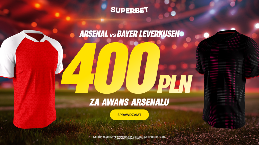 W Leverkusen padł remis 1:1, ale w rewanżu Arsenal zagra przed własną publicznością. Czy „Kanonierzy” wykorzystają atut swojego boiska i awansują do 1/4 finału Ligi Mistrzów? Nowi gracze Superbet wygrywając taki zakład odbierają dodatkowy bonus 400 złotych.