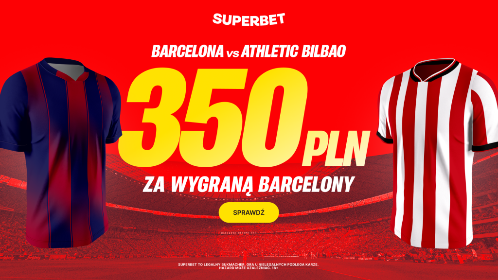 W pierwszym meczu po przerwie na kadrę FC Barcelona zmierzy się z Athletic Bilbao. Czy „Duma Katalonii” dopisze sobie do konta kolejne 3 punkty? Nowi gracze Superbet korzystający z kodu PEWNIACZKI mogą odebrać aż 350 złotych dodatkowego bonusu za zwycięstwo Barcelony.