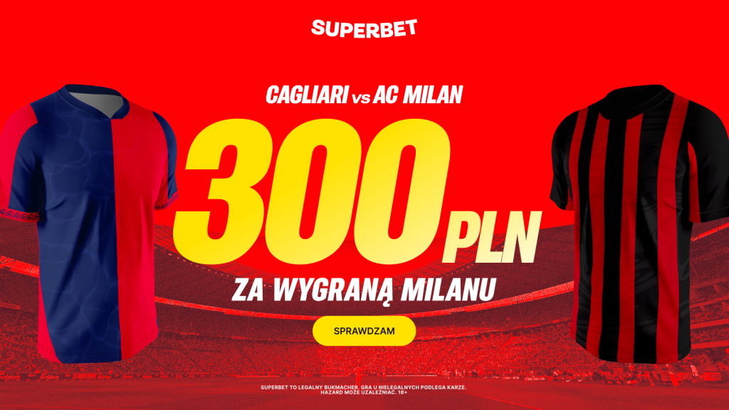 Czy w pierwszym meczu Serie A w nowym roku AC Milan pokona Cagliari? Wicelider tabeli na pewno będzie tu faworytem. Nowi gracze Superbet mogą odebrać dodatkowe 350 złotych bonusu za wygrany zakład na zwycięstwo Milanu z ligowym średniakiem z Cagliari.