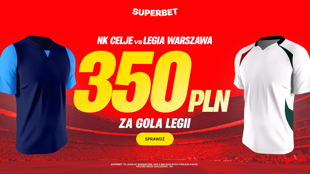 W czwartkowy wieczór Legia Warszawa zagra w Lidze Konferencji ze słoweńskim NK Celje. Czy zdoła wywieźć stamtąd korzystny wynik? Nowi gracze Superbet rejestrujący się z kodem PEWNIACZKI mogą odebrać dodatkowe 350 złotych bonusu, jeśli Legia strzeli w tym spotkaniu przynajmniej jednego gola.