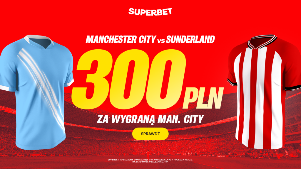 Rewelacyjny beniaminek z Sunderlandu w najbliższy weekend zagra z Manchesterem City. Czy faworyt zagra zgodnie z oczekiwaniami i pokona niżej notowanego rywala mimo jego dobrej formy? Nowi gracze Superbet mogą odebrać dodatkowe 300 złotych bonusu za zwycięstwo City.