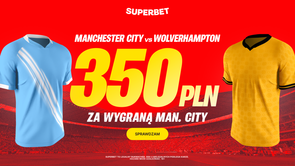Manchester City przegrał dwa kolejne mecze, więc z ostatnim w tabeli Wolverhampton powalczy o przełamanie. Czy „The Citizens” pokonają najsłabszy zespół w Premier League? Nowi gracze Superbet mogą odebrać aż 350 złotych bonusu za wygranie takiego zakładu.