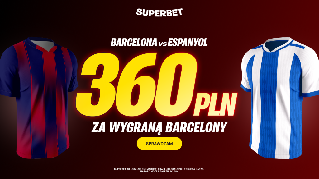 Barcelona ma w głowie przede wszystkim rewanż w Lidze Mistrzów, ale musi też zmierzyć się z Espanyolem w lokalnych derbach. Czy wyjdzie z tego starcia zwycięsko? Nowi gracze Superbet za wygraną Barcy odbiorą dodatkowe 360 złotych bonusu.