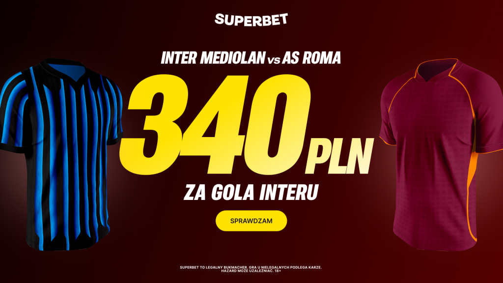 Mecz Interu z Romą to jeden z hitów wielkanocnej niedzieli. Czy lider Serie A zdobędzie dziś bramkę? Nowi gracze Superbet mogą odebrać 340 złotych dodatkowego bonusu za wygranie tego zakładu.