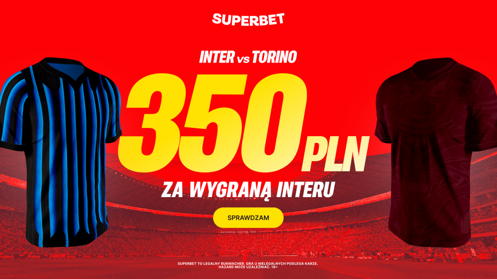 - Za poprawny typ na zwycięstwo Interu Mediolan w meczu z Torino wygrywasz Bonus 350 PLN.