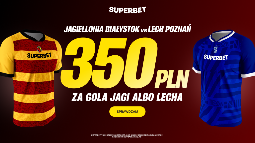 Starcie Jagiellonii z Lechem to jeden z największych hitów świątecznego weekendu. Który z zespołów trafi w nim do siatki? Nowi gracze Superbet wygrywając taki zakład odbiorą dodatkowo 350 złotych w formie bonusu.