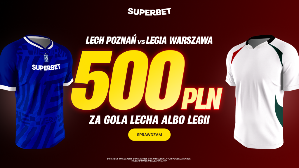 Mecz Lecha z Legią to prawdziwy klasyk i największy hit dnia. Który z zespołów trafi w niedzielę do siatki? Nowi gracze Superbet za wygranie takiego zakładu odbiorą dodatkowe 500 złotych bonusu!