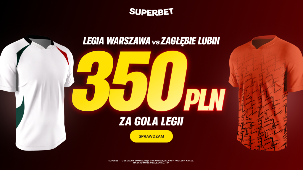 To nie żart: Zagłębie gra o mistrzostwo, a Legia broni się przed spadkiem z Ekstraklasy. Czy warszawski zespół strzeli gola w piątkowym meczu? Nowi gracze Superbet za wygranie takiego zakładu odbiorą dodatkowe 350 złotych bonusu.