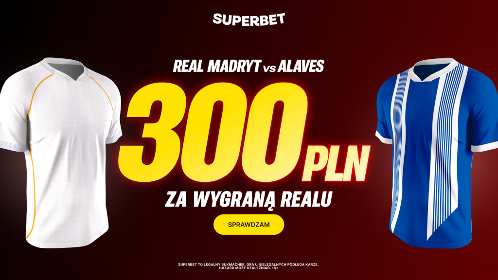 - Za poprawny typ na zwycięstwo Realu Madryt w meczu z Alaves wygrywasz Bonus 300 PLN.