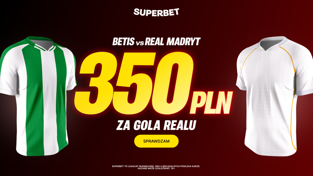 Mistrzowski tytuł Realowi nie przypadnie, ale trudno myśleć, żeby odpuścił sobie ostatnie mecze sezonu. Czy zespół z Madrytu strzeli gola Realowi Betis? Nowi gracze Superbet korzystający z kodu PEWNIACZKI za wygranie tego zakładu odbiorą dodatkowe 350 złotych bonusu.