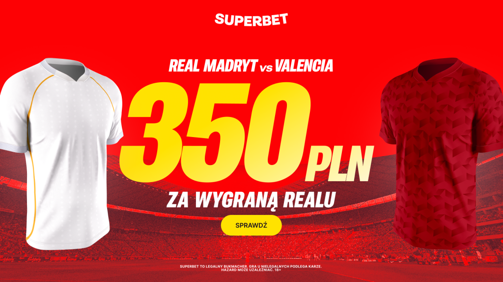 Real Madryt wciąż jest w euforii po wygranym El Clasico. Czy „Królewscy” udowodnią wyższość również w meczu z Valencią? Nowi gracze Superbet mogą otrzymać dodatkowo aż 350 złotych bonusu, jeśli wygrają swój pierwszy zakład na zwycięstwo Realu w tym spotkaniu.