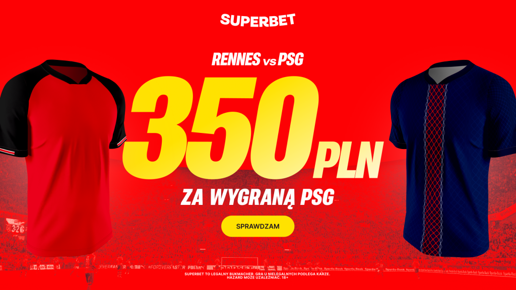 W piątkowym meczu francuskiej Ligue 1 lider z Paryża zagra na wyjeździe z Rennes. Czy PSG dopisze do swojego konta kolejne 3 punkty? Nowi gracze Superbet rejestrujący się z kodem PEWNIACZKI mogą odebrać dodatkowego 350 złotych bonusu za wygrany zakład na zwycięstwo PSG.
