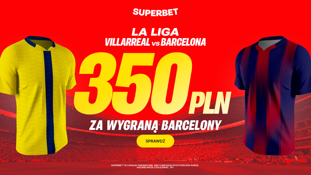 Przed Barceloną trudne zadanie, bo Villarreal to naprawdę solidny zespół. Mimo wszystko to właśnie ona jest faworytem tego spotkania i strata punktów będzie niespodzianką. Nowi gracze Superbet mogą odebrać dodatkowe 350 złotych bonusu za wygranie zakładu na zwycięstwo Barcelony.