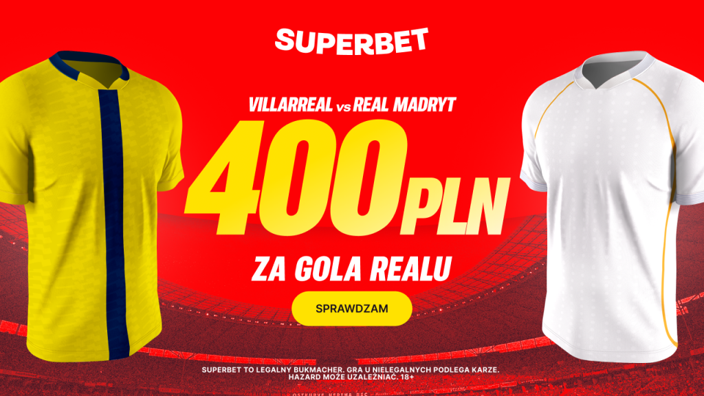 - Za poprawny typ na gola Realu Madryt w meczu z Villarrealem wygrywasz Bonus 400 PLN.