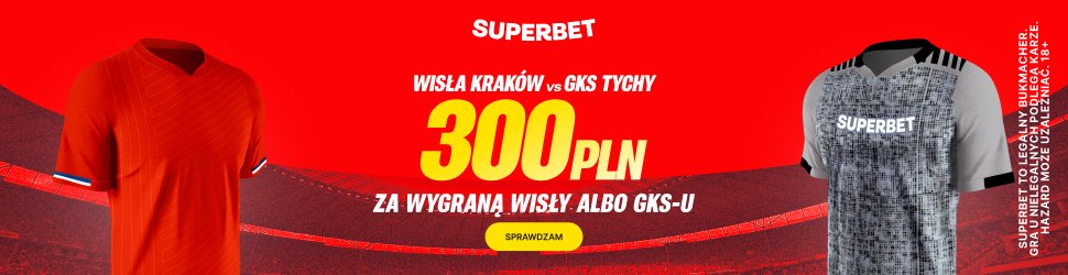 Jeśli ktoś nie ma jeszcze konta w Superbet i nie skorzystał z ostatnich promocji to ma kolejną okazję, aby odebrać dodatkowe 300 złotych bonusu. Po pełnej rejestracji z kodem PEWNIACZKI należy wpłacić depozyt 50 złotych oraz zagrać 2 złote na singla na zwycięzcę meczu Wisła Kraków – GKS Tychy. Zakład musi być rzecz jasna wygrany.
