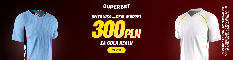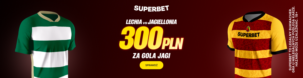Jeśli ktoś nie ma jeszcze konta w Superbet i nie skorzystał z ostatnich promocji to ma kolejną okazję, aby odebrać dodatkowe 300 złotych bonusu. Po pełnej rejestracji z kodem PEWNIACZKI należy wpłacić depozyt 50 złotych oraz zagrać 2 złote na singla na gola Jagiellonii z Lechią lub Realu Madryt z Celtą Vigo. Zakład musi być rzecz jasna wygrany.