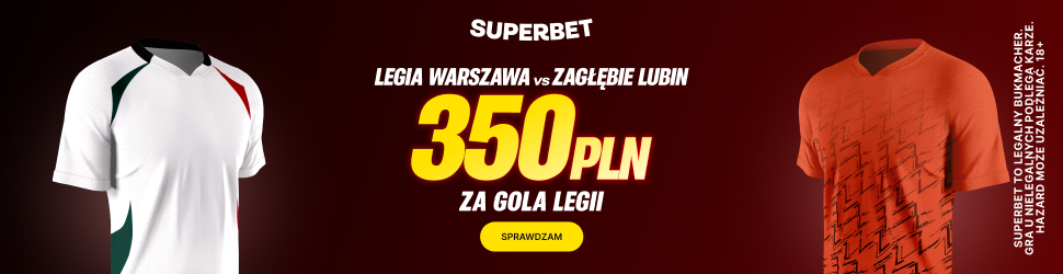Jeśli ktoś nie ma jeszcze konta w Superbet i nie skorzystał z ostatnich promocji to ma kolejną okazję, aby odebrać dodatkowe 350 złotych bonusu. Po pełnej rejestracji z kodem PEWNIACZKI należy wpłacić depozyt 50 złotych oraz zagrać 2 złote na singla na gola Legii Warszawa w meczu z Zagłębiem Lubin. Zakład musi być rzecz jasna wygrany.