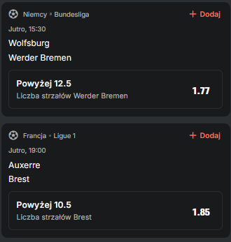 W Ligue 1 również mamy zespół zamieszany w walkę o utrzymanie. Auxerre raczej ostatniej trójki nie opuści, choć nadal ma matematyczne szanse, natomiast Brest kręci się wokół pucharów, na które jednak raczej nie ma co liczyć. Linia 10,5 strzałów w przypadku gości wydaje się być całkiem atrakcyjna, więc wybieramy taki zakład.