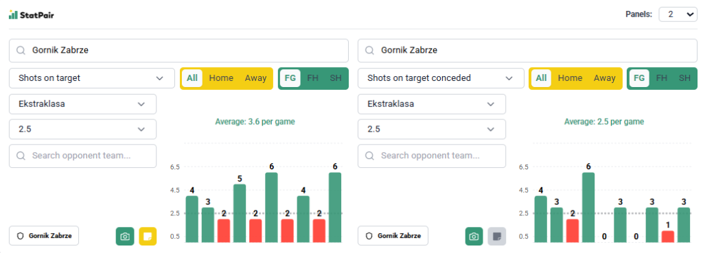 - Nasz typ: obie drużyny +2,5 celnych strzałów