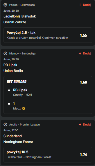 Co do strzałów: Lipsk oddaje ich dużo i trudno przypuszczać, aby Union w tej formie był w stanie zaliczyć ich więcej. W ostatnich 5 domowych meczach piłkarze RB oddali 20, 13, 17, 14 i 24 strzały, a Union w tym okresie na wyjazdach nie potrafił zaliczyć ich więcej niż 12. W drugą stronę też jest dobrze, bo gospodarze w 3/5 starć nie pozwolili na 12 uderzeń, z kolei goście poza spotkaniem z Heidenheim (7) kończyli z bagażem 13, 19, 21, a nawet 31 uderzeń. Zresztą, w całym sezonie w 15 domowych meczach Lipsk aż 13 razy wygrywał tą statystykę, zatem jesteśmy dobrej myśli. Union raczej skupi się tu na obronie i kontrach, bo z taką dyspozycją raczej gry nie poprowadzi, więc taki zakład pasuje całkiem nieźle.