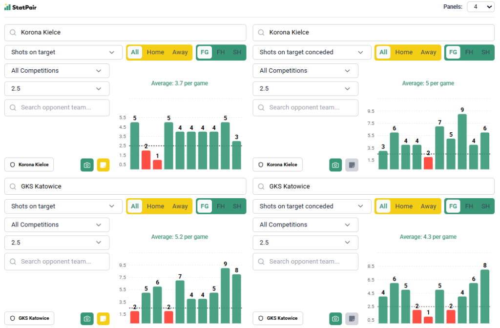 - Nasz typ: obie drużyny +2,5 celnych strzałów & GKS +0,5 bramki