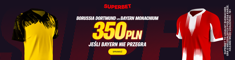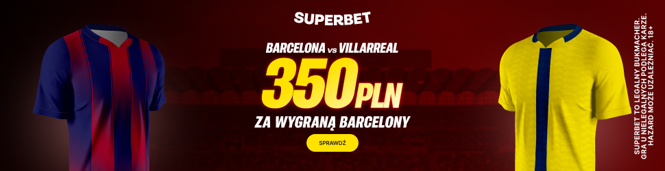 Jeśli ktoś nie ma jeszcze konta w Superbet i nie skorzystał z ostatnich promocji to ma kolejną okazję, aby odebrać dodatkowe 350 złotych bonusu. Po pełnej rejestracji z kodem PEWNIACZKI należy wpłacić depozyt 50 złotych oraz zagrać 2 złote na singla na zwycięstwo Barcelony z Villarrealem lub zwycięstwo bądź remis Bayernu z Borussią. Zakład musi być rzecz jasna wygrany.