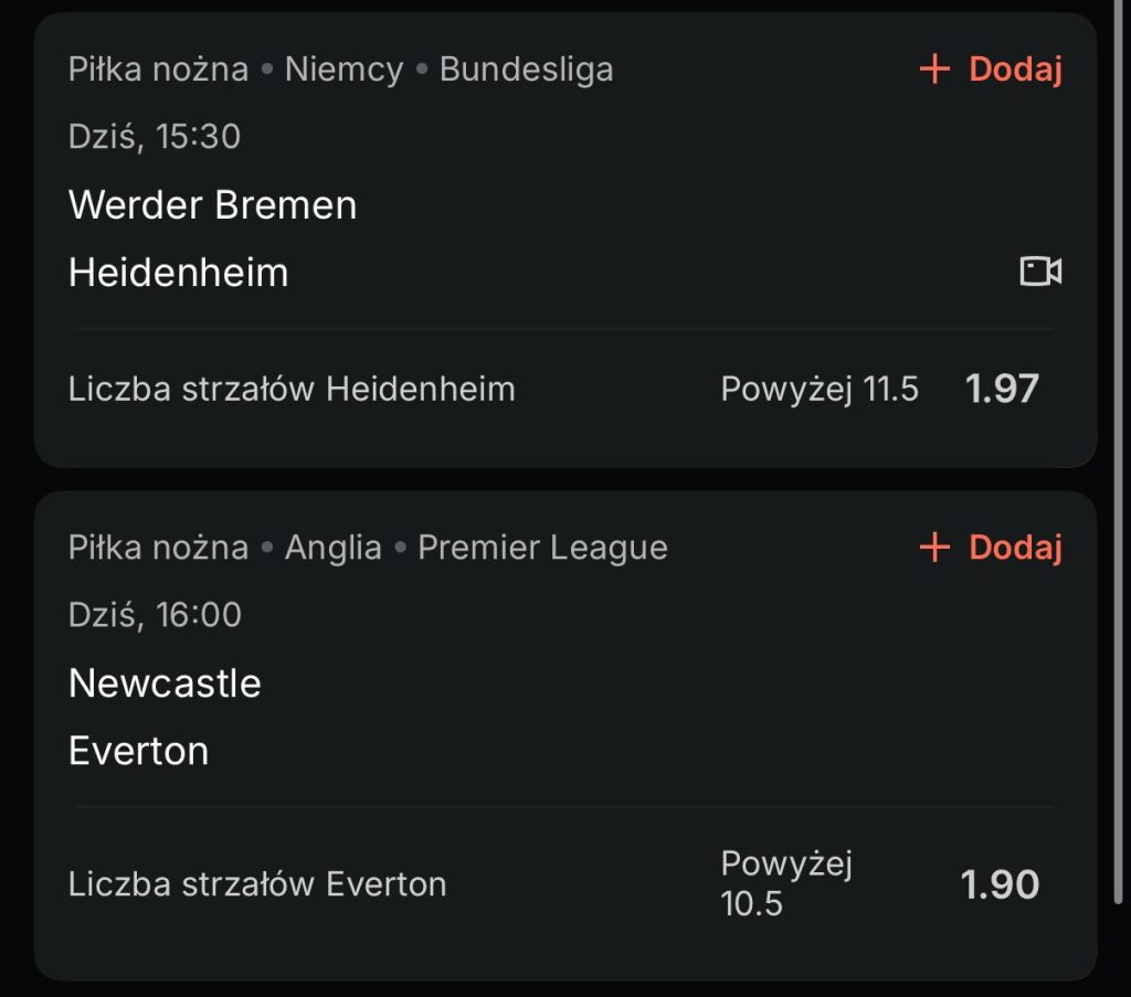 Dla obu zespołów to bardzo ważne spotkanie, bo Werder wygrywając opuści zapewne strefę spadkową, ale dla Heidenheim to prawdziwy mecz o życie. Zwycięstwo przybliża ich do Werderu na 2 punkty i daje jeszcze jakieś szanse na utrzymanie, natomiast porażka rzuca kotwicę na dno ligowej tabeli. Gospodarze są w równie słabej formie i nie wygrali żadnego z 13 meczów (w tym 9 porażek), więc Heidenheim byłoby niespełna rozumu, gdyby nie zaatakowało i próbowało grać tu zachowawczy futbol. Gości interesować muszą tylko 3 punkty i właśnie w tym ofensywnym nastawieniu pokładamy nadzieję. Poza kontekstem zgadzają się też ich liczby, bo na 10 poprzednich kolejek linii 11,5 nie pokryli oni jedynie z Bayernem, Lipskiem (7) oraz Stuttgartem (10), za każdym razem u siebie. Ostatnie wyjazdy to już 20, 15, 13, 12 oraz 16 strzałów, także fajnie byłoby zobaczyć taką mentalność ponownie.