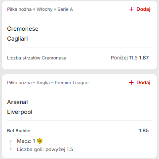 Czwartkowa oferta jest uboga, ale za to mocno jakościowa – przed nami aż dwa mega hity w Premier League oraz drugim półfinale o Superpuchar Hiszpanii. My w tej analizie wybieramy ten pierwszy oraz uzupełniamy go o jedno ze starć w Italii, gdzie celujemy w under strzałów jednego z zespołów.