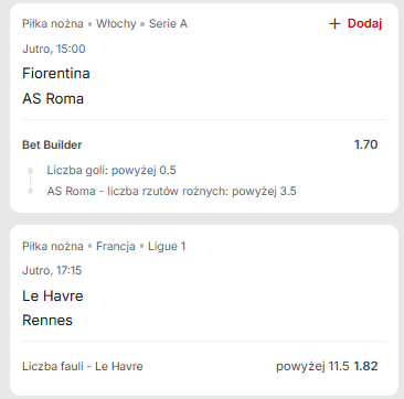 Pierwszym z meczów na naszym niedzielnym kuponie będzie starcie Fiorentiny z Romą. Oba zespoły grały w czwartek w pucharach, a legalni bukmacherzy nie maja swojego faworyta – ich zdaniem może pójść to w każdą stronę. Nas zaciekawiły statystyki związane z rzutami rożnymi, dlatego weźmiemy się za to w ten sposób – zakładamy minimum 4 kornery Romy oraz jej gola w tym spotkaniu.