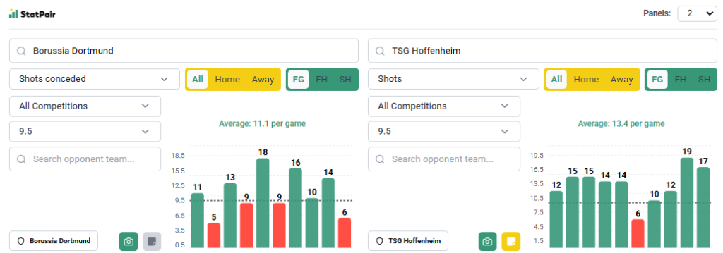 10 uderzeń lub więcej to w tym sezonie dla „Wieśniaków” żaden problem – we wszystkich 12 kolejkach tylko raz nie potrafili dojść do tego pułapu, a ostatnie dwie to 19 i 17 strzałów. Poprzedni sezon to również dobre wieści, bo Hoffenheim oddawało wówczas 11 i 12 uderzeń, zatem z BVB przetarcie ma całkiem niezłe. Gospodarze w 10 ostatnich meczach 6-krotnie dopuścili to takiej liczby strzałów, dwukrotnie byli na styku, choć trzeba przyznać, że na nich nie nabija się tego aż tak łatwo. Wierzymy tu w regularność Hoffenheim oraz fakt, że za Borussią dwa trudne mecze z Bayerem Leverkusen, w tym pucharowy w środku tygodnia.