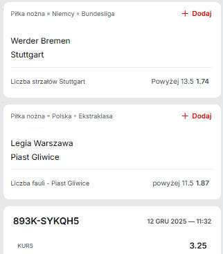 Czy mamy tu jakiegoś red flaga? Na pewno, i to całkiem sporego – Werder w tym sezonie ani razu nie pozwolił u siebie na więcej niż 13 strzałów. Wierzymy jednak, że Stuttgart zagra swoje, przejmie inicjatywę i będzie oddawał dużo strzałów, jak to ma w zwyczaju. W kilku naszych typowaniach mieliśmy już taką sytuację i w większości to zespół nastawiony na uderzenia przejmował spotkanie, na co liczymy i teraz.